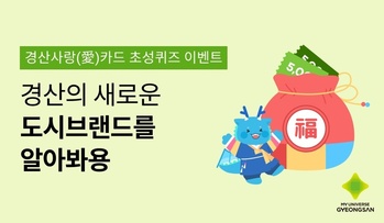 경산시(시장 조현일)는 2024년 설을 맞아 경산사랑(愛)카드 이용자들을 위한 초성퀴즈 이벤트를 진행한다.이번 행사는 2월 1일부터 15일까지 진행되며 경산시의 미래 비전을 담은 도시브랜드(My universe Gyeongsan)의 초성을 퀴즈로 맞히는 것으로 정답자