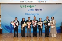 청도군(군수 김하수)은 지역농업 및 농촌발전에 공헌한 우수 농업인 3명을 ‘2023년 청도군 농업인대상’으로 선정하고 시상식을 가졌다.29일 군정 종무식에서 열린 행사에서 올해 청도군 농업인대상 수상자는 이정희·예관기·권승혁 씨가 선정됐다.이정희(65, 화양읍) 씨는