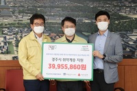 한국수력원자력(사장 정재훈, 이하 한수원)이 3일 코로나19 피해 극복 지원을 위해 본사 임직원들이 반납한 임금 4000여 만원을 경주지역 취약계층을 위해 써달라며 경주시에 전달했다.한수원은 지난 4월 13일 임금반납 1차분인 1억4000여만원을 경주시에 전달한 바 있