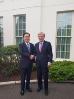 존 볼튼 백악관 국가안보보좌관이 정의용 청와대 국가안보실장과의 전화 통화 내용을 공개했다. 백악관과 청와대 양측 국가안보보좌관이 통화한 지 수시간 만의 일이다.볼튼 보좌관은 7일(현지시간) 폭스뉴스와 인터뷰를 갖고 "몇 시간 전인 오늘 아침, 한국의 (정의용) 국가안보