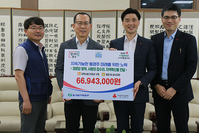 한수원 월성원자력본부(본부장 노기경)는 1일 오후 1시 홍보관에서 동경주 지역 취약계층 지원을 위해 6700여만원의 성금을 경북사회복지공동모금회(회장 신현수)로 전달했다.이번 지원금은 동경주지역 취약계층을 위해 매년 진행하는 경로당 방역사업, 사랑의 집수리 지원, 지역