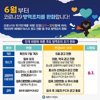김천시는 중앙대책본부가 6월 1일을 기점으로 코로나19 위기 경보 수준을 ‘심각→경계’로 하향 조정하면서 주요 방역 조치 사항을 시민을 상대로 안내하고 있다.먼저 시민 체감도가 높았던 주요 방역 조치인 코로나19 확진자의 7일 동안의 격리 의무가 5일 격리 권고로 전환