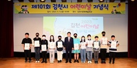 김천시(시장 김충섭)는 5일 제101회 어린이날을 맞아 김천종합운동장 2층에서 6,000여 명이 참가한 가운데 ‘2023 김천 어린이날 기념행사’를 열었다.행사 당일 우천으로 기념식은 문화예술회관 소공연장에서 진행된 가운데 기념식은 아동 권리 헌장 낭독, 모범 어린이