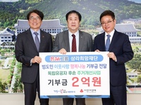 경북도는 21일 도청에서 SM그룹‧삼라희망재단이 기부문화 확산을 위해 추진 중인 범도민 이웃사랑 행복나눔 캠페인에 동참하며 기부금 2억 원을 전달했다고 밝혔다.이번 기부금은 경북사회복지공동모금회를 통해 조국의 자주독립을 위해 희생‧헌신한 독립유공자 후손들의 주거환경개선