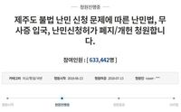 '난민법 개정' 靑 국민청원 63만명 돌파… 역대 최다