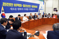 자유한국당이 5일 혁신비상대책위원회 구성을 앞두고 비대위 구성에 대한 원외당협위원장들의 의견을 청취했다.이날 간담회에는 김성태 자유한국당 대표 권한대행 겸 원내대표와 함진규 정책위의장, 안상수 혁신비상대책위원회 준비위원장을 비롯해 원외 당협위원장 100여 명이 참석했다