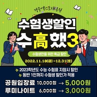 경주엑스포대공원(대표 류희림)은 오는 17일 수능시험을 치른 수험생을 대상으로 18일부터 오는 12월 31일까지 수험생 특별할인 이벤트를 마련해 그동안 입시 스트레스를 받은 학생들의 심신을 위로한다.이 기간 동안 공원과 야간 체험형 산책코스 ‘루미나이트’ 입장요금을 5