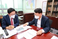 울진군(군수 손병복)이 2023년도 국비 예산 확보를 위해 막바지 총력을 다하고 있다.손병복 울진군수는 지난 15일 박형수 국회의원과 만나 울진군 현안사업 및 국비 예산이 필요한 사업의 당위성을 설명하고, 지속적인 관심과 예산 확보를 위한 적극적인 지원을 요청했다고 밝