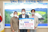 (재)예천문화관광재단(이사장 김학동)은 24일 (주)대명과 (주)경북산업 심왕섭 대표로부터 ‘SEMI 곤충엑스포 2022 예천곤충축제’ 성공 기원 1000만 원을 기탁받았다.기탁금 외에도 (주)서정에서 수건 500개, 예천청년회의소부인회 100만 원, (주)위닉스에서도