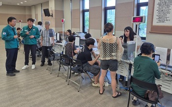포항시 북구청(구청장 김응수)은 22일 민생회복 소비쿠폰 1차 신청 현장을 방문해 창구 운영 현황과 시민 불편 사항 등을 직접 살피고 관계자들을 격려했다.현재 북구 읍면동 주민센터에서는 소비쿠폰 발급을 위한 창구를 따로 마련해 운영하고 있으며, ‘찾아가는 현장 신청 서