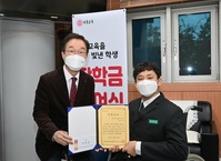 재단법인 경상북도교육장학회(이사장 임종식)는 29일 경북교육청 문화원에서 포항장성고등학교 3학년 남희욱 학생에게 50만 원의 장학금과 장학증서를 전달하고 격려했다.남희욱 학생은 어릴 때부터 지체장애를 가졌으나 장애로 인한 여러 어려움을 극복하고 ‘2021년도 국가공무원