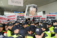 민노총, 한국당 전당대회 급습… 나팔 불며 '훼방'
