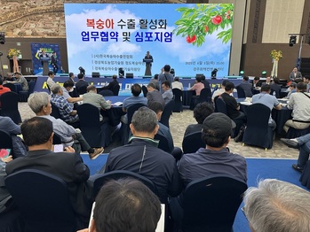 경상북도농업기술원은 5일 경주화백컨벤션센터에서 국내 복숭아 산업의 위기 극복과 수출 활성화를 위한 ‘수출용 복숭아 수체관리 기술 심포지엄’을 열고, 청도복숭아연구소, (사)한국복숭아수출연합회, 경북복숭아수출농업기술지원단 3자 간 업무 협약을 맺었다.이번 행사는 빈번해지