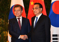 문재인 대통령이 리커창 중국 국무원 총리와 만나 "양국의 위축된 기업과 경제 분야가 조속히 회복되도록 리 총리가 적극 독려해달라"고 요청했다.문 대통령은 15일 중국 베이징 인민대회당 서대청에서 열린 리커창 총리와의 면담에서 사드 갈등으로 확산된 경제 문제를 언급하며