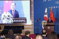 왕이, 文대통령 팔 '툭툭'…靑 "친근함 표현"