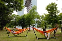 (재)문화엑스포는 경주타워 앞 신라왕경숲에 해먹(그물침대) 20여개를 설치해 경주엑스포 공원을 찾은 관광객 누구나 자유롭게 이용할 수 있는 쉼터를 제공한다고 밝혔다.경주지역 공원에 이처럼 공용 해먹이 설치되기는 경주엑스포가 처음이다. 엑스포 공원 정문과 경주타워 숲 사