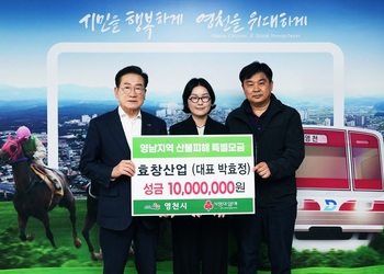 영천시는 경북지역 산불 피해 복구를 위해 효창산업㈜에서 1000만 원, 소비자교육중앙회 영천시지회에서 200만 원, 영천YMCA 영천노인복지센터 생활지원사 일동이 153만 원을 기부했다고 밝혔다.효창산업은 아스콘생산 전문업체로 5년 연속 대한민국 우수 아스콘사로 선정됐
