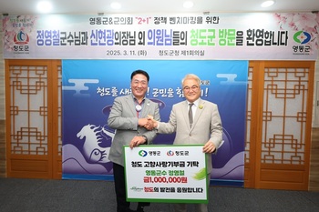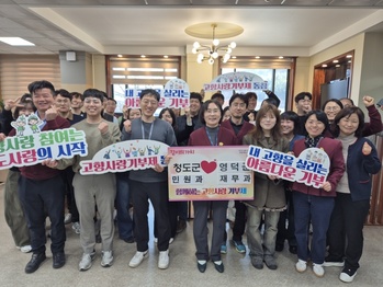 청도군(군수 김하수)은 지난 11일 청도군 민원과와 영덕군 소속 공직자가 총 560만 원의 상호기부를 통해 고향사랑기부제 활성화와 지역 간 상생협력을 실천한다.이번 기부에는 청도군 민원과와 영덕군 재무과 직원 총 56명이 참여해 고향사랑 기부금 총 560만 원을 상호기