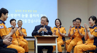 소방조직을 42년 만에 소방청으로 독립시키는 정부조직개편안을 마련한 문재인 대통령이 일선 소방서를 전격 방문해 소방관들로부터 열렬한 환영을 받았다.'물 들어올 때, 노 젓는다'는 말대로, 소방청 독립에 따른 소방관들의 반응이 뜨거울 때 여론을 결집해 공공부문 인력 증원