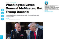 도널드 트럼프 美대통령과 허버트 R.맥마스터 美국가안보보좌관의 사이가 좋지 않다는 주장이 나왔다. 美블룸버그 통신은 지난 8일(현지시간) “워싱턴 정객들은 모두 좋아하는 맥마스터 장군, 트럼프는 아냐”라는 외부 기고 칼럼을 게재했다. 이 칼럼에 따르면, 美백악관 내에서