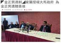 김정남 유가족이 말레이시아 정부에 시신처리를 일임했다고 현지 중문매체 ‘중국보(中國報)’가 16일 보도했다.‘중국보’에 따르면 누르 라시드 이브라힘 말레이시아 경찰청 부청장은 이날 “김정남 유가족이 시신처리와 관련된 모든 전후 일을 말레이시아 정부가 처리하는데에 동의한