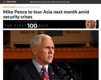 렉스 틸러슨 美국무장관이 오는 15일부터 19일까지 일본, 한국, 중국을 차례대로 방문할 예정인 가운데 마이크 펜스 美부통령 또한 오는 4월 동아시아 국가들을 순방할 예정인 것으로 알려졌다. 英‘로이터 통신’은 지난 13일(현지시간) 마이크 펜스 美부통령이 4월 중 한