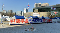 '대통령 탄핵 기각을 위한 국민총궐기 운동본부(이하 탄기국)'이 서울광장에 설치한 텐트 40여개와 관련해 서울시가 '행정 대집행'을 검토할 수 있다고 31일 밝혔다.강태웅 서울시 대변인은 이날 정례 브리핑에서 "(탄핵 반대 텐트는) 신고하지 않고 점유 중인 상태"라며