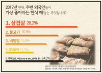 한국인들의 ‘삼겸살에 소주’ 문화가 외국인들에게도 인기를 얻고 있는 것으로 나타났다. 외국인들이 가장 좋아하는 한식 메뉴로 ‘삼겹살’이 선정됐으며, 한국인들이 삼겹살과 즐겨 먹는 ‘소주’ 또한 외국인들에게 가장 먼저 권하는 술로 꼽혔다. 한국 홍보 전문가인 서경덕 성신