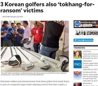 필리핀 경찰관들이 공권력을 악용해 강도짓을 벌였다. 이들은 한국인 관광객 3명을 감금한 채 금품을 빼앗고 몸값까지 뜯은 것으로 알려졌다.프랑스 ‘AFP 통신’에 따르면 2016년 12월 30일 필리핀 수도 마닐라에서 북쪽으로 2시간 거리에 있는 앙헬레스에서 한국인 골프