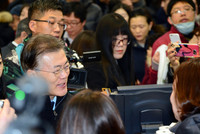 안방 챙기기 나선 文, 정치적 고향 부산서 세몰이…수백명에 사인