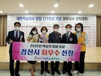 경산시(시장 조현일)는 23일 대한적십자사 경북지사에서 열린 대한적십자사 창립 117주년 기념 경북지사 연차대회에서 2022년 적십자 회비모금 경상북도 시부 최우수상을 받았다고 밝혔다대한적십자사 경북지사는 매년 도내 23개 시·군 중 회비모금 실적이 우수한 6개 시·군