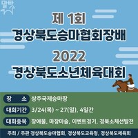 경상북도는 이달 23일부터 27일까지 상주국제승마장에서 승마인들의 축제인 제1회 경북승마협회장배 및 2022년 경북소년체육대회 승마대회를 경상북도승마협회(회장 손만호) 주관으로 개최한다. 이번 승마대회는 장애물·마장마술, 허들경기, 권승경기, 릴레이, 거북이달리기 등