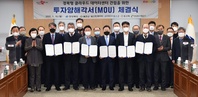경상북도는 10일 도청에서 예천군, 케이티, 포스코, 포스텍과 함께 클라우드 데이터센터 건립을 위한 투자양해각서(MOU)를 체결했다.이철우 경북도지사, 김학동 예천군수, 신수정 케이티 엔터프라이즈 부문장, 김형동 국회의원, 신대호 포스코 벤처펀드그룹장, 김상우 포스텍
