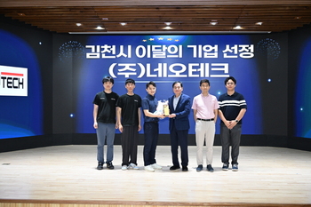 경북 김천시는 8월 이달의 기업으로 자동차 부품제조사인 네오테크(대표 이준명)를 선정하고 12일 김천시청에서 선정패 전달식(사진)과 회사기를 게양했다.지난 2006년 대구에서 창업한 이 회사는 2022년 김천시로 본사를 이전하고 주행 안정성을 결정짓는 차량용 고성능 서