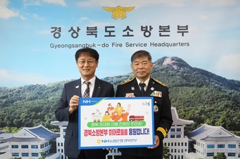 NH농협은행 경북본부(본부장 김주원)는 13일 경북소방본부(본부장 박성열)를 방문해 소방공무원들에게 감사의 마음을 담은 간식 전달 행사를 실시했다. 이번 행사는 각종 재난과 사고 현장에서 도민의 생명과 재산을 지키기 위해 노력하는 소방공무원들의 노고에 감사의