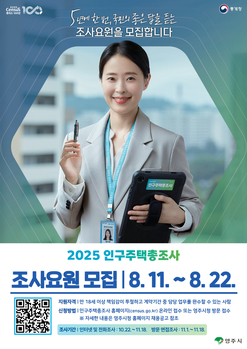 영주시는 2025년 인구주택총조사의 원활한 추진을 위해 11일부터 22일까지 조사요원 85명을 모집한다고 말했다.이번 조사는 11월 1일부터 18일까지 전국에서 일제히 실시되며, 5년 주기로 진행되는 국가 단위 대규모 통계조사다. 인구·주택 현황을 종합적으로