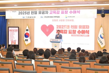 경북교육청(교육감 임종식)은 25일, 구미교육지원청 다목적 강당에서 ‘2025년 헌혈 유공자 교육감 표창 수여식’을 열고, 꾸준히 헌혈에 참여해 생명 나눔 문화를 실천한 교직원 10명에게 교육감 표창을 수여했다고 밝혔다.이번 수여식은 지속적인 헌혈 활동을 통해 이웃사랑
