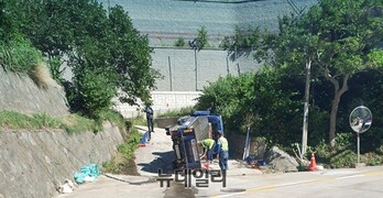 대낮 울릉도서 화물차 옹벽 충돌... 2명 부상