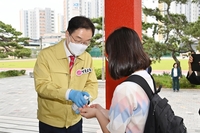 임종식 경북교육감은 24일 전교생이 등교하는 안동 복주여자중학교 현장을 직접 찾아 학생과 교직원과 주먹인사를 나누며 격려했다. 임종식 경북교육감은 교문 입구에서부터 학생들과 주먹인사를 나누며 안전한 전교생 등교를 지원하는 한편 학교 내 생활 속 거리두기, 마스크 착용