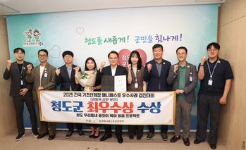 청도군(군수 김하수)은 지난 23일부터 24일까지 한국매니페스토와 경북연구원 공동 주최로 경북 안동시에서 실시된 ‘2025 전국기초단체장 매니페스토 우수사례 경진대회’에 참가해 공동체 강화 분야에서 ‘최우수상’을 받았으며, 지난해에 이어 2년 연속 최우수라는 쾌거를 이