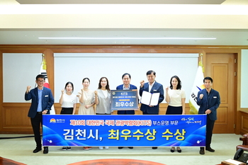 경북 김천시가 지난 22일 일산 킨텍스에서 끝난 ‘제10회 대한민국 국제 관광박람회’에서 기초자치단체 ‘부스운영 부문’ 최우수상을 받았다고 밝혔다.이 박람회는 관광업계의 최신 동향을 소개하는 행사로 전국 210개 기관과 지자체가 참여해 다양한 콘텐츠를 선보였다.김천시는