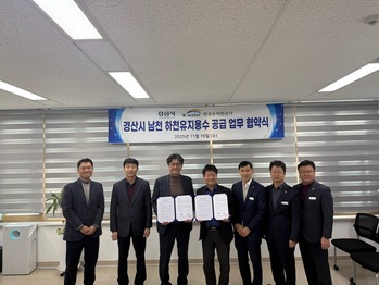 경산시(시장 조현일)는 19일 맑은 물 사업본부에서 한국수자원공사 운문권 지사와‘남천 하천유지용수(환경 개선 용수) 공급’을 위한 업무협약을 체결했다고 밝혔다.이번 협약은 경산시에서 추진 중인 도심 하천을 특색있는 수변환경으로 정비하는‘남천 자연생태하천 조성사업’의 일