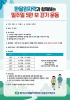 (주)한국수력원자력 한울원자력본부(본부장 박범수, 이하 한울본부)는 오는 7일부터 4월 10일까지 5주간 ‘한울원자력과 함께하는 일주일 5만 보 걷기 운동’을 시행한다.지난해 이어 2회를 맞이한 ‘일주일 5만 보 걷기 운동’은 코로나19 장기화로 심신이 지친 온 국민의