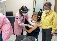 울릉군(군수 김병수)은 지난달 28일 전국 최초로 헬기를 이용해 아스트라제네카 코로나19 백신을 공급받아, 2일 65세미만 송담실버타운 종사자 및 입소자를 대상으로 첫 접종을 실시했다.접종 첫날인 2일 울릉군 1호 코로나19 백신 예방접종자인 울릉송담실버타운 김형섭 원