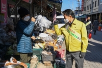 윤경희 청송군수는 9일 청송시장, 안덕시장에서 열리는 ‘설맞이 전통시장 장보기 행사’에 참석해 코로나19 방역수칙 홍보와 장보기를 하면서 시장 상인들과 주민들을 격려한다.