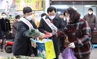 경주시는 3일 코로나19 장기화로 어려움을 겪고 있는 지역 전통시장을 찾아가 ‘설맞이 전통시장 장보기 행사’를 가졌다.주낙영 경주시장은 이날 오후 지역 내 대표적 전통시장인 성동시장을 찾아 장보기 행사를 갖고 코로나19로 어려움을 겪고 있는 상인들을 응원하고 격려했다.
