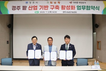 경주시(시장 주낙영)는 3일 산내면행정복지센터에서 지역을 대표하는 향토기업 ㈜황남빵과 경주 팥 생산 농가 대표 간 업무협약을 체결했다.이번 협약은 지역 농산물의 안정적 소비처 확보와 전통식품 산업과의 연계 강화를 목표로 추진된 것으로, 경주 팥 산업의 지속 가능한 성장