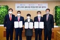 경북도와 한국도로공사, 김천시는 18일 한국도로공사 회의실에서 스마트물류사업 추진 업무협약을 체결하고 경북혁신도시 남부권에 스마트물류 거점도시 육성에 공동 협약하기로 했다. 이날 협약식에는 하대성 경북도 경제부지사와 김진숙 한국도로공사 사장, 김충섭 김천시장을 비롯한