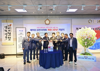 경북 김천시의회(의장 나영민)가 1일 나영민 의장과 시의원, 배낙호 시장, 전직 의원, 의회 유관단체장 등이 참석한 가운데 제9대 의회 개원 3주년 기념행사(사진)를 가졌다.김천시립교향악단의 사전 축하공연으로 시작한 이 행사에서는 나영민 의장의 기념사, 배낙호 김천시장