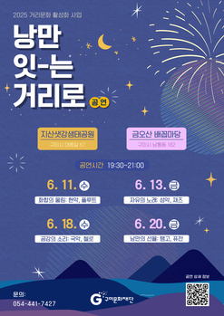 경북 구미문화재단은 ‘거리문화 활성화사업’으로 시민 누구나 일상에서 수준 높은 문화를 즐길 수 있는 거리공연인 ‘낭만 잇-는 거리로’를 개최한다.문화의 문턱을 낮추고 거리라는 열린 공간에서 예술이 스며드는 도시환경을 정착시키기 위한 이번 공연은 오는 11일부터 20일까